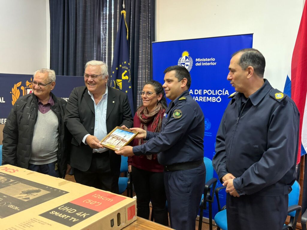El presidente de la Junta Departamental de Tacuarembó, Edil Juan Eustathiou junto a los vicepresidentes Cecilia Rodríguez y Guillermino Rodríguez Sotto, realizaron hoy la entrega de un Smart TV de 50”, destinado al Centro de Comando Unificado de la Jefatura de Policía de Tacuarembó.